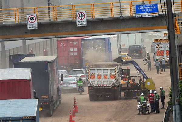 Un tráiler derramó aceite sobre más dos kilómetros en la Vía de Evitamiento, desde Puente Nuevo hasta la Atarjea, informó la Línea Amarilla SAC (Lamsac), concesionaria de dicha vía.
