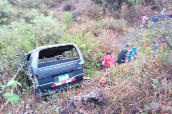 El vuelco de una combi dejó al menos esta mañana ocho personas muertas y nueve heridos en el distrito de Acochaca, provincia de Asunción, en la sierra de la región Áncash.