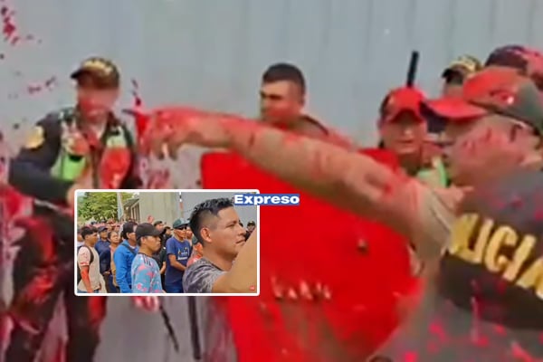 Un grupo de estudiantes de la Universidad Nacional Intercultural Fabiola Salazar Leguía de Bagua (UNIFSLB), en la región Amazonas, arrojó pintura roja contra los agentes policiales que resguardaban a la institución y a los integrantes de la comisión organizadora recientemente designada.