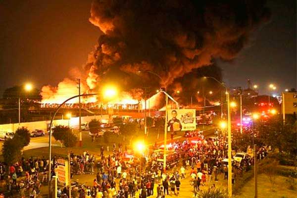 Un voraz incendio se registro esta madrugada en el asentamiento humano San Juan Bosco, en el Callao. Más de 200 viviendas quedaron en cenizas por el siniestro y hasta el lugar llegaron alrededor de 27 unidades del Cuerpo General de Bomberos Voluntarios.
