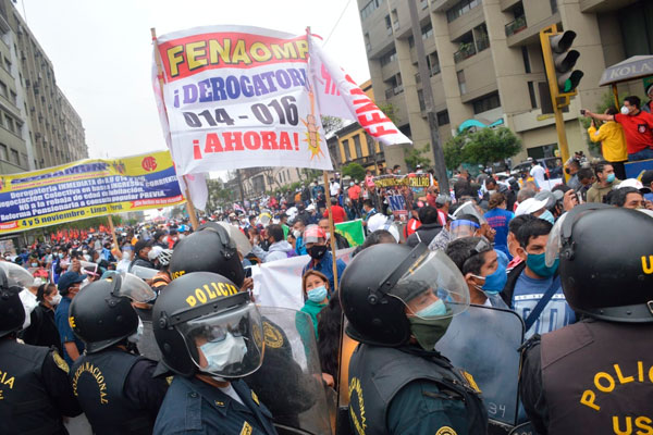 Sin temor de exponerse al contagio, pese a la presencia de muchos adultos mayores, se aglomeraron cerrando la Av. Abancay en ambos sentidos para exigir estabilidad y las retribuciones económicas que sí se les da a los otros regímenes laborales. Cámaras televisivas captaron que muchos de los presentes no utilizaban adecuadamente la mascarilla de protección por la pandemia del Covid-19.