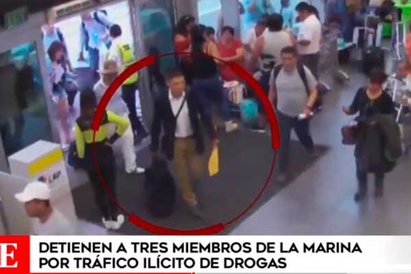 Efectivos del Departamento Antidrogas PNP capturó al miembro de la Marina de Guerra, Jorge Carrasco Salinas, en el aeropuerto Jorge Chávez (Callao), cuando intentaba viajar con dos kilos de cocaína ocultos su equipaje y que tenía como destino la ciudad de Valencia (España). Sin embargo, otros dos marinos estaban involucrados en el delito.