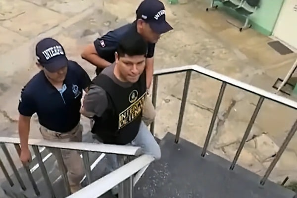 Tras ser denunciado, fue capturado y trasladado a una comisaría de Santiago de Surco. Pese a sus pedidos de no salir en televisión y que el coronel Aldo Ávila, jefe de la oficina de Interpol, confirmara que esto no sucedería, fue expuesto ante los medios peruanos con un chaleco de detenido.