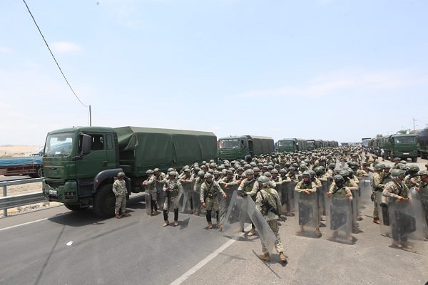 Fuerzas Armadas se desplazaron al sur. Ya está en Ica el personal militar de la Primera Brigada de Fuerzas Especiales del Ejército del Perú para apoyar a la PNP en el desbloqueo de carreteras.