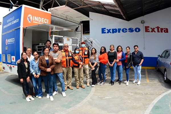 El Instituto Nacional de Defensa Civil (Indeci), junto a su vehículo simulador de sismos, visitaron las instalaciones de los Diarios Expreso y Extra, donde se vivió la experiencia de un movimiento telúrico de 10 grados.