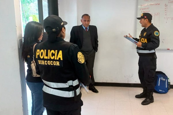 Tras la detención de Urbina Loayza, el equipo fiscal continuó realizando los actos urgentes de investigación en las instalaciones de la Dircocor.