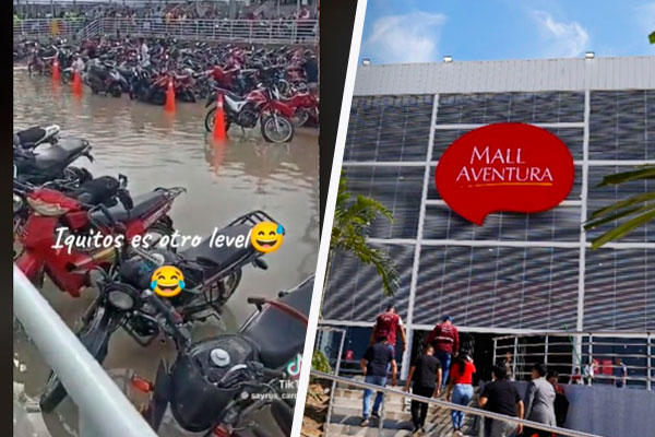 Iquitos: centro comercial presenta cortes de electricidad y estacionamiento se inunda por fuertes lluvias