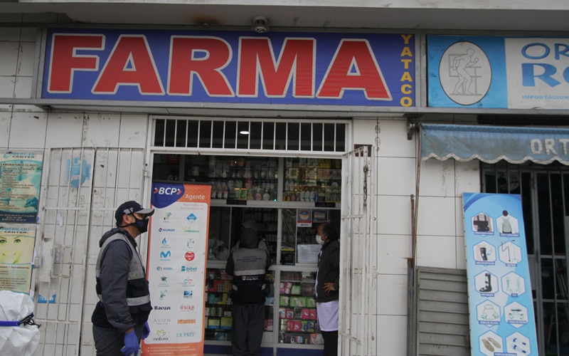 Durante la intervención se inspeccionó todas las farmacias del lugar y se logró efectuar la clausura de dos farmacias de las cuales una de ellas no había implementado los protocolos de bioseguridad contra el COVID-19 para la atención a los clientes.
