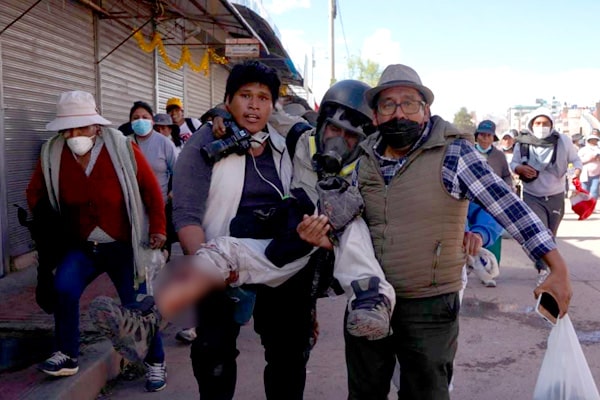 Este sábado, el fotoperiodista de EFE, Aldair Mejía, resultó herido durante las violentas manifestaciones que se están desarrollando en Juliaca en contra del mandato de Dina Boluarte.