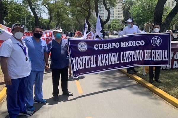 Por su parte, Walter Aliaga, vicepresidente del Cuerpo Médico del hospital, pidió que se respete el acuerdo alcanzado entre el Minsa y la Federación Médica para que, por cada día trabajado se otorguen tres días de licencia con remuneración.