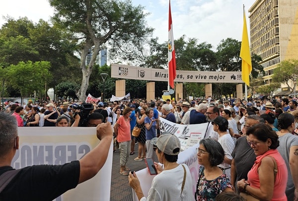 Vecinos del distrito de Miraflores se dieron cita en el parque Kennedy para pedir la salida del alcalde Carlos Canales. La convocatoria se dio hace varios días por medio de redes sociales.