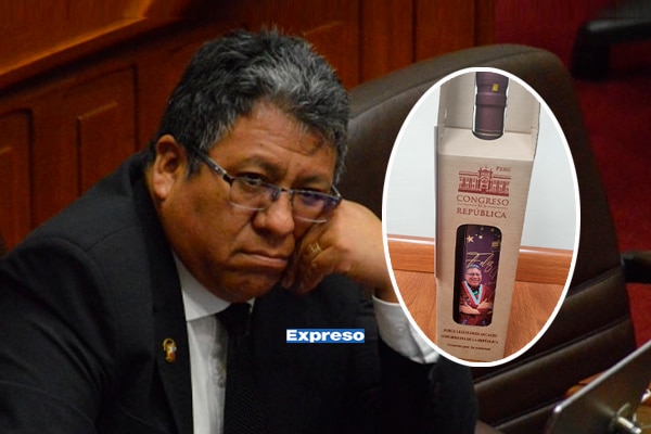 El congresista Jorge Flores Ancachi, de la bancada de Podemos Perú, desató polémica tras obsequiar botellas de vino personalizadas con su fotografía, su nombre y el logotipo oficial del Parlamento.