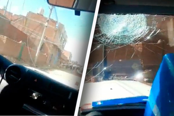 El vehículo del Centro de Salud Melgar, con personal Samu, fue apedreada mientras se dirigía al Hospital Carlos Monge Medrano de Juliaca. La unidad quedó inoperativa.