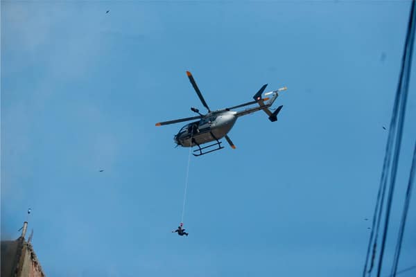 El general PNP Fredy Lopez, director de la Diravpol, detalló que la suboficial descendió aproximadamente 50 metros desde el helicóptero hasta el lugar donde se encontraba el evacuado, quien carecía de una vía segura para descender y escapar del edificio envuelto en fuego.