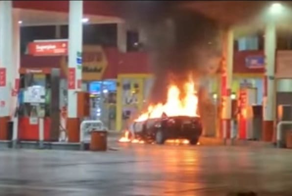 Mientras abastecía el tanque de gas natural vehicular (GNV), un automóvil se incendió esta madrugada en un grifo ubicado en el cruce de las avenidas Huarochirí con Huancaray, en el distrito de Santa Anita.