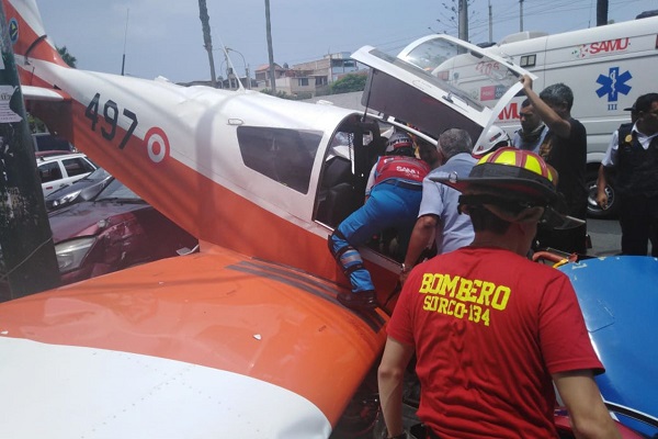 El coronel PNP Mario Arata, jefe policial de Lima, informó que la avioneta tenía dos tripulantes, uno de los cuales resultó herido y fue trasladado a una clínica cercana.
