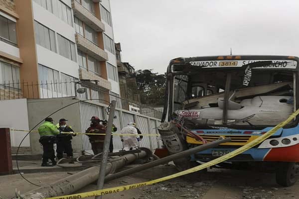 Un bus de transporte público chocó contra un poste de luz a la altura de la cuadra dos de la avenida Agustín La Roza Lozano cerca de la urbanización Reporteros Gráficos del Perú, en Surco.