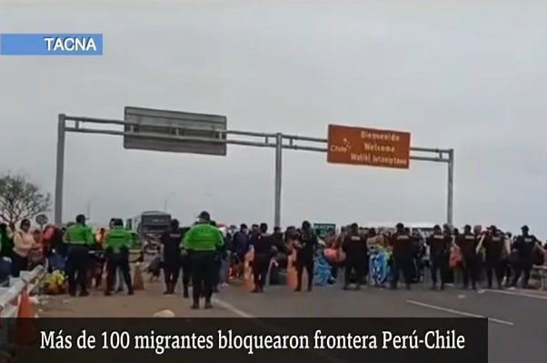Cerca de un centenar de extranjeros migrantes provenientes de Chile bloquearon la vía que une a Tacna con Arica, al ser impedidos de cruzar la frontera hacia territorio peruano.