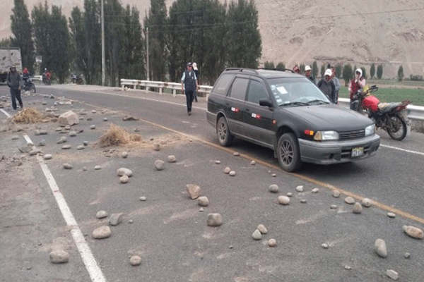 Cientos de manifestantes iniciaron hoy un paro indefinido contra el proyecto minero Tía María. Con piedras y otro tipo de objetos, bloquearon el kilómetro 16 de la carretera que une Arequipa con Puno, además de otras vías importantes de la región.