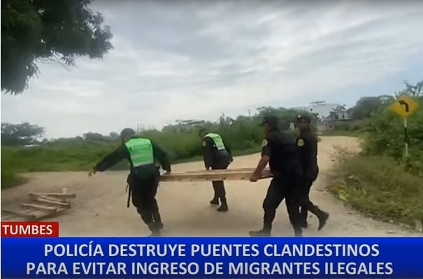 En un operativo conjunto entre la Policía de Perú y de Ecuador, se cumplió una rigurosa incursión sobre el canal internacional de Tumbes, donde destruyeron alrededor de 55 puentes clandestinos ubicados en la línea divisoria de los territorios de ambos países, para impedir el ingreso de migrantes ilegales.