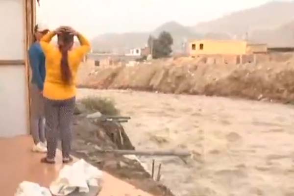 La crecida del caudal del río Chillón, en el distrito de Comas, pone en peligro la vida de 100 familias y 30 casas cerca de la ribera, a la altura de la Alameda del Pinar. Los vecinos piden la ayuda de las autoridades para que les proporcionen costales, rocas y arenas. Además, muchos de ellos desarmaron sus casas para evitar una tragedia. (Fuente: TVPerú)