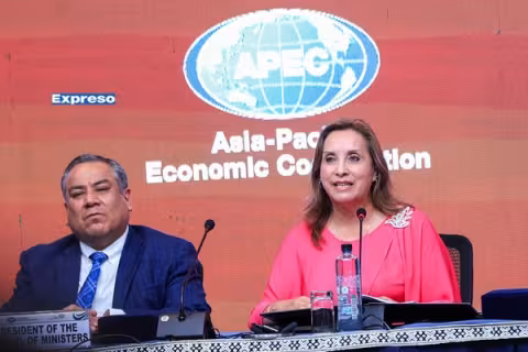 Imagen Política APEC Perú 2024 2 Oct 2024 - 15:35 APEC y Ministerio de Cultura firman convenio En el marco de la Cumbre de la Semana de Líderes Económicos. Redacción Expreso Imagen Economía APEC Perú 2024 30 Sep 2024 - 04:02 APEC Perú 2024: sultán de Brunéi y primer ministro de Singapur confirman su participación en foro Ministro Elmer Schialer sostuvo reunión con figuras internacionales. Redacción Expreso Imagen Economía APEC Perú 2024 26 Sep 2024 - 01:38 Carlos Vásquez: “Muchas economías de APEC están sorprendidas de nuestra capacidad de recuperación” Presidente de las Reuniones de Altos Funcionarios del Foro APEC destaca que el PBI del Perú se incrementará este año en 3%, un crecimiento “bastante elevado” con relación a los países vecinos. Aaron Salomón Cargar más