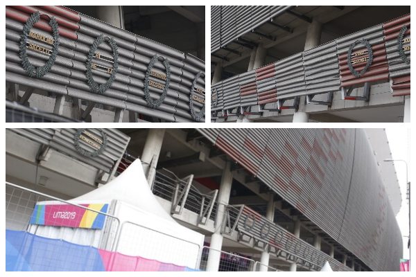 La fila donde se ubican los Laureles Deportivos, muchos de ellos presentan un deterioro y descuido inaceptable, sobre todo porque estos símbolos contienen el nombre de deportistas que han ganado medallas olímpicas o títulos internacionales.