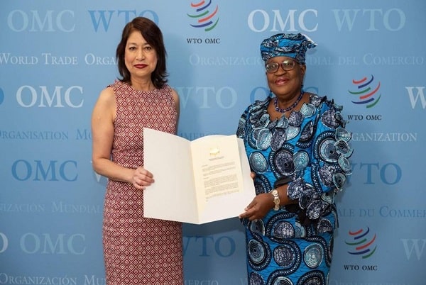 En reunión con la Directora General de la @OMC_es, @NOIweala, Canciller Gervasi depositó el instrumento de aceptación del Acuerdo sobre Subvenciones a la #Pesca de la @OMC_es. El #Perú es el 1° país latinoamericano en ratificar este importante Acuerdo. #fisheriessubsidies pic.twitter.com/DSJf43pZLG