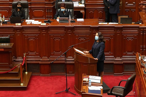 La jefa del Gabinete Ministerial expresó su acuerdo con los tres proyectos de ley para el año fiscal 2021, referidos al Equilibrio Financiero del Presupuesto del Sector Público, el Endeudamiento del Sector Público y el Presupuesto del Sector Público.