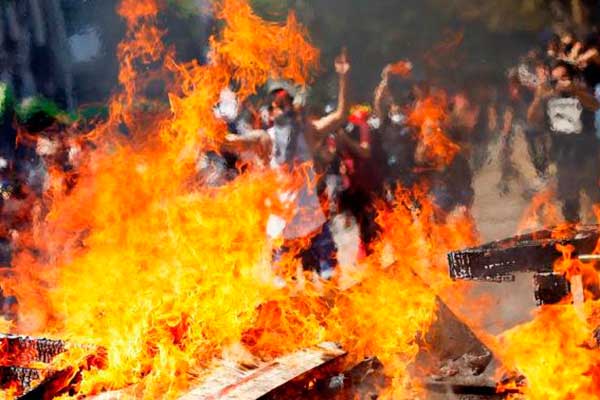 Violencia se encendió por el alza luego suspendida de 3.75 % en la tarifa del metro en Santiago y derivó en demandas por pensiones del sistema previsional privado.