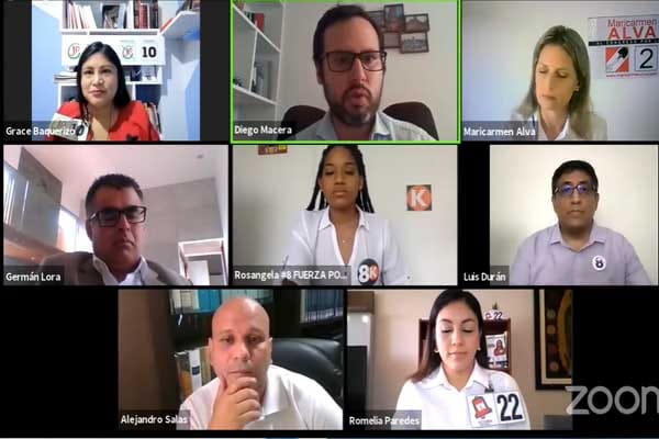 El Instituto Peruano de Economía (IPE) organizó el primero de sus cinco debates temáticos. En la mesa laboral participaron: Romelia Paredes, de Victoria Nacional; Rosangella Barbarán, de Fuerza Popular; Grace Baquerizo, de Juntos por el Perú; Luis Durán, del Partido Morado; Maricarmen Alva, de Acción Popular; y Alejandro Salas, de Somos Perú; con el abogado laboralista Germán Lora, como moderador.