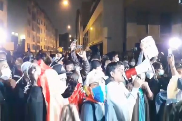 Ante los resultados de las 7 de la noche, a boca de urna, que dan la victoria a Keiko Fujimori sobre Perú Libre, los simpatizantes de Pedro Castillo se han movilizado hasta las oficinas de la ONPE para protestar.