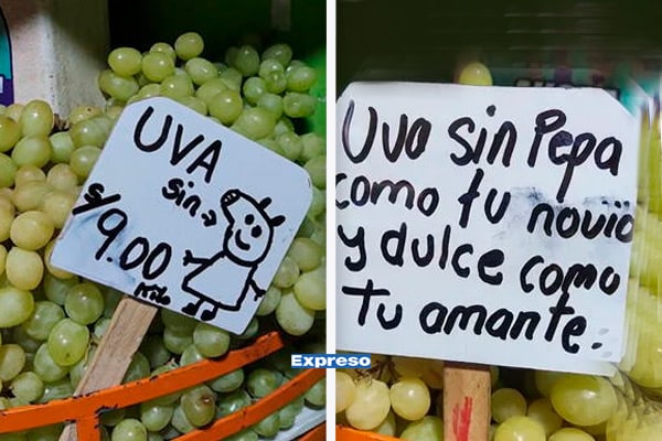 Año Nuevo: comerciante de uvas sorprende con letrero y se hace tendencia, “Sin ‘pepa’ como tu novio”
