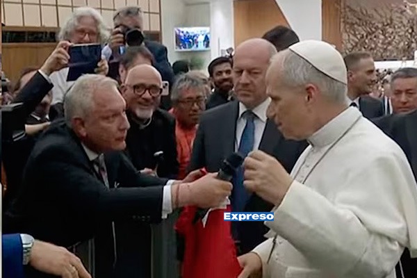 Apenas lo tuvo algunos metros, el periodista se acercó a León XIV, se identificó y le dijo: “Papa Roberto, papa Roberto, de Perú”, fueron las palabras que Rave dirigió al sumo pontífice.