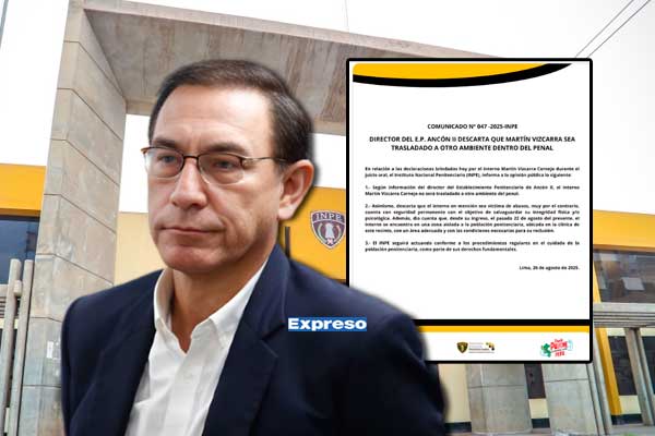 El Instituto Nacional Penitenciario (INPE) confirmó que el expresidente Martín Vizcarra permanece en el área de tópico del penal Ancón II desde su traslado del penal Barbadillo el pasado 22 de agosto.