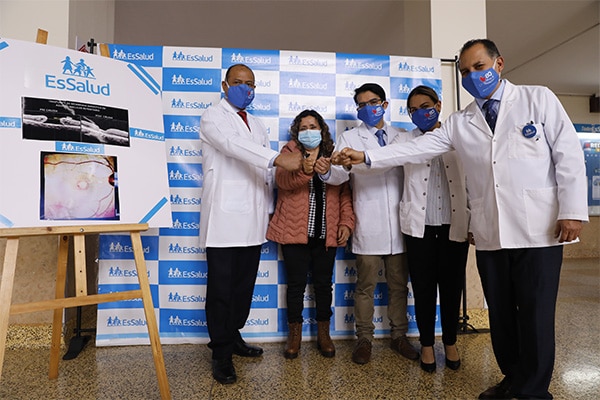 El doctor Charles Conde Obregón, médico oftalmólogo del Hospital Guillermo Almenara, señala que la paciente tenía una gran lesión en la mácula. Por esta razón, junto a su equipo, decidió aplicar una cirugía nunca antes usada a nivel nacional.