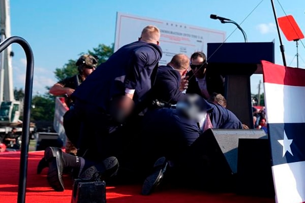Durante su discurso, se escucharon disparos que provocaron la rápida reacción del Servicio Secreto, que aseguró la seguridad del exmandatario.