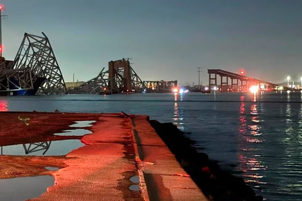 El puente Francis Scott Key, uno de los más importantes de la ciudad norteamericana de Baltimore, se desplomó tras ser impactado inesperadamente por un barco carguero.