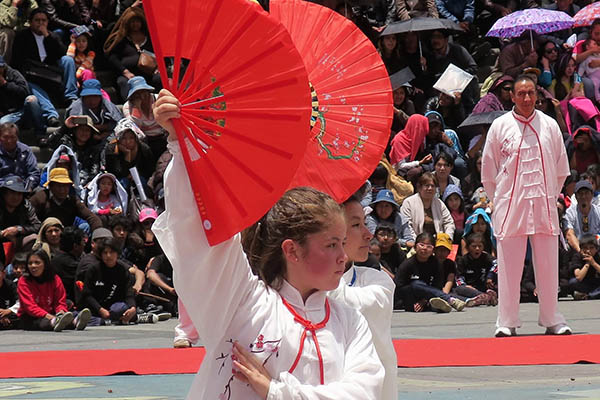 Los asistentes pudieron deleitarse con la interpretación de danzas como La Moseñada, un baile autóctono boliviano, o las del dragón y el león, representativas de China. Además hubo demostraciones de artes marciales, como el Kung Fu, que se practican en distintas academias paceñas.