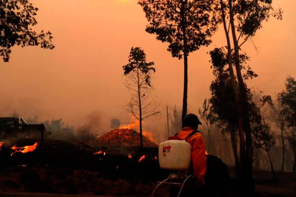 En Chile, un helicóptero cayó en la comuna de Galvarino, en la región de La Araucanía, mientras combatía uno de los incendios forestales de la zona. Las autoridades locales confirmaron que el mecánico y el piloto de la aeronave perdieron la vida.