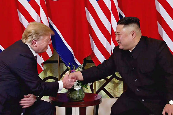 El encuentro arrancó en el céntrico hotel Sofitel Metropole con un Donald Trump y un Kim Jong-un sonrientes y visiblemente relajados, que se estrecharon la mano durante casi diez segundos frente a un fondo de banderas estadounidenses y norcoreanas intercaladas.