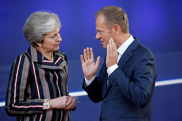 May remitió este viernes una carta al presidente del Consejo Europeo, Donald Tusk, para pedir la extensión -del 12 de abril al 30 de junio- de la validez del Artículo 50 del Tratado de Lisboa (que hace referencia a la retirada de un país comunitario), y evitar así un "divorcio" drástico y sin acuerdo del club comunitario.