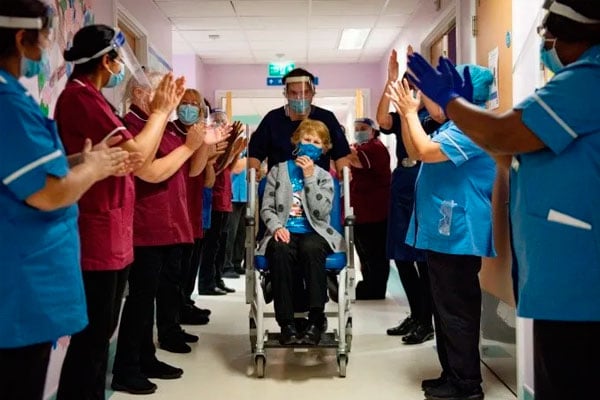 Keenan, a quien sus amigos y familia llaman “Maggie”, recibió la primera de las dos dosis de la vacuna de la enfermera May Parsons, de origen filipino, en medio de una gran atención mediática al marcar el comienzo de lo que el Gobierno del Reino Unido ha denominado el V-Day” (Día de la V o vacunación).