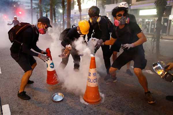 En un intento por despejar las calles más rápido que antes, la policía china disparó gases lacrimógenos y utilizó sus porras en los puntos críticos del centro y en distritos de clase trabajadora. Los manifestantes, que en un momento lanzaron dos bombas molotov, tomaron represalias con una estrategia bien organizada: retirarse cuando los efectivos los perseguían, solo para volver a aparecer en otro lugar.