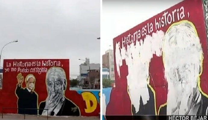 Los partidarios de la democracia no se reprimieron y de un solo brochazo borraron el mural dedicado al excanciller del terror, Héctor Béjar, el mismo que acusó a la Marina de Guerra del Perú de iniciar el terrorismo, una declaración imprudente que le costó su salida de Torre Tagle.
