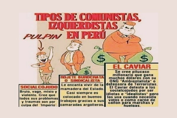 Qué gracioso este meme referido a la tipología de la izquierda en el Perú. En la escala más baja están, según esta versión, los social-cojudos, por lo general pulpines, que son vagos y brutos, que de todos sus males y taras le echan la culpa al imperialismo.