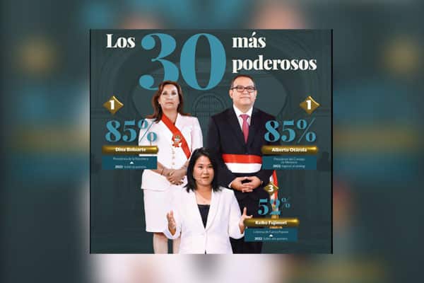 La presidenta Dina Boluarte y el primer ministro Alberto Otárola son los más poderosos del país, según la última encuesta del poder elaborada por Ipsos para Semana Económica, con 85% cada uno. Los sigue Keiko Fujimori (52%).