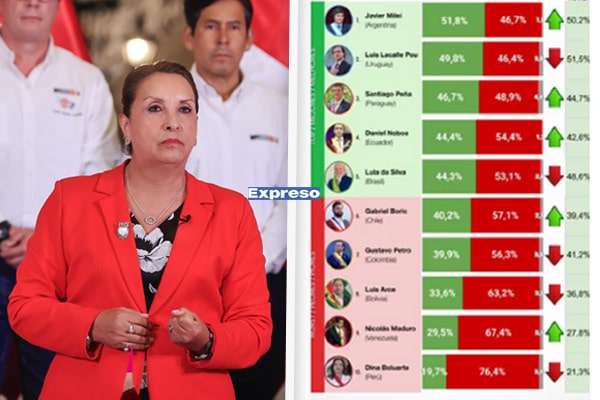 Mandataria peruana quedó incluso por debajo del dictador Nicolás Maduro en aceptación.