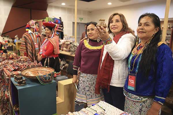 "Cada pieza que ustedes exponen son piezas originales, no son trabajadas en serie, cada una de ellas es una en el universo y eso es lo que hay que valorar (…) Ese trabajo que ustedes hacen está basado en el esfuerzo, en esa voluntad diaria a fin de que nuestra historia perdure en el tiempo", dedicó Dina Boluarte a los artistas.