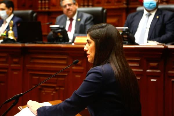 La ministra de Economía también sostuvo ante la representación nacional que "tenemos que ser responsables en el manejo de las cuentas fiscales". "Llamamos a la responsabilidad del uso de los recursos de todos los peruanos. No podemos implementar propuestas que dificulten la recuperación del espacio fiscal", expresó.
